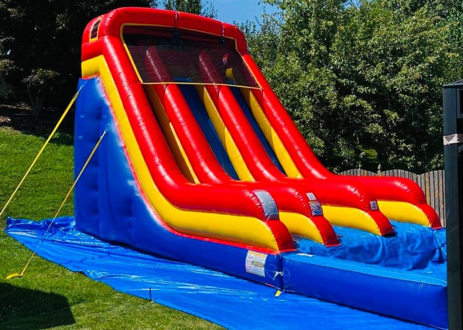 When you rent the 18ft Primary Color double lane wet/dry slide, our team will deliver, set up, and take down the unit so you can focus on the party. Expect clear safety instructions and a secure setup location. Adult supervision is required while in use. We recommend a flat area with access to power and (for wet use) a garden hose. 🔌🚿