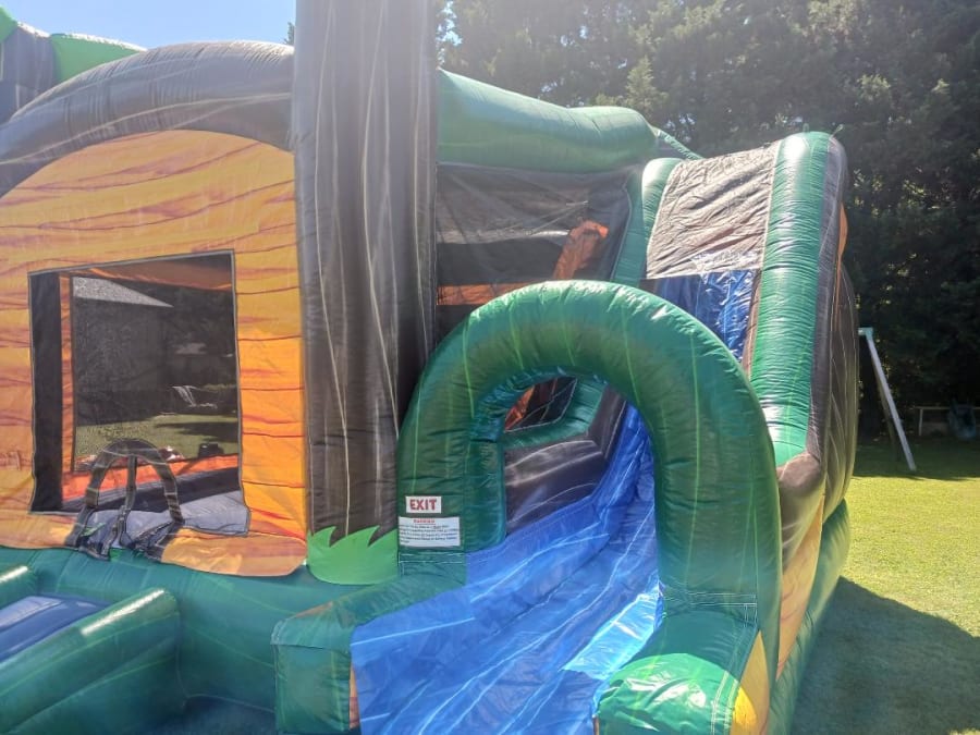 Make any event unforgettable with the Jump n Splash Paradise Palms w/Pool. This inflatable combo bounce house with water slide is perfect for birthdays, family reunions, and community events. Use it wet with the attached pool for a splash party or dry with our special slippery spray for high-speed sliding fun. Available for rental across Delaware - New Castle County, Kent County, and Sussex County. ๐